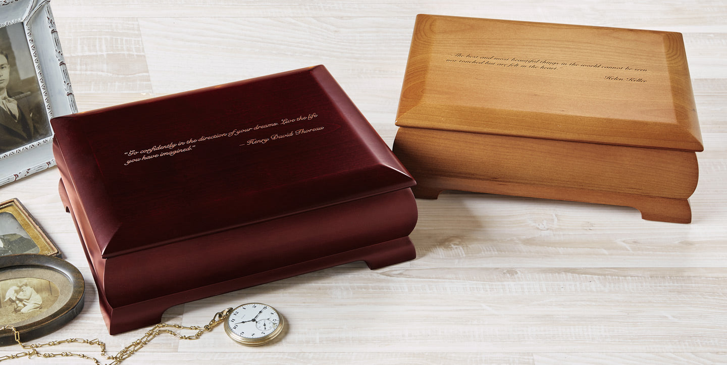 We offer the following: debossing for leather products, engraving for metal, laser printing for resin, plastic and wood products and UV printing for translucent covers.