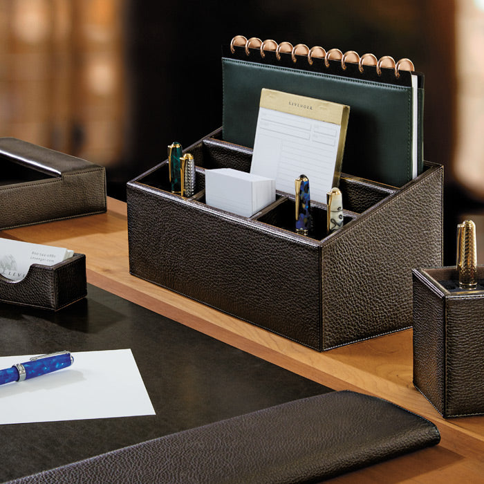 Our leather desk pads, tech organizers, and wallets are crafted from the finest materials and built to last. Add a monogram to elevate it from practical to personal. These pieces are designed not just to look great, but to bring quiet order and sophistication to his workspace—whether at home or in the office.
